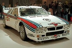 The Lancia Rally (Tipo 151, also known as the Lancia Rally 037, Lancia 037 or Lancia-Abarth #037 from its Abarth project code SE037) was a mid-engine sports car and rally car built by Lancia in the early 1980s to compete in the FIA Group B World Rally Championship. Driven by Markku Alén, Attilio Bettega, and Walter Röhrl, the car won Lancia the manufacturers' world championship in the 1983 season. It was the last rear-wheel drive car to win the WRC.